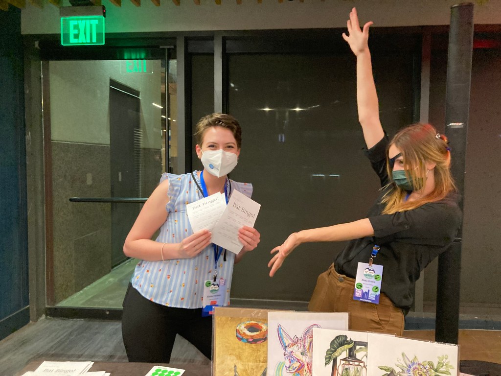 We then ran across town to co-hoast the 19th International Bat Research Conference. In addition to helping run the conference, Tigga presented her talk on GBatNet’s history and mission, Abby her talk “Bat Meat: Preference or Necessity? The Role of Protein