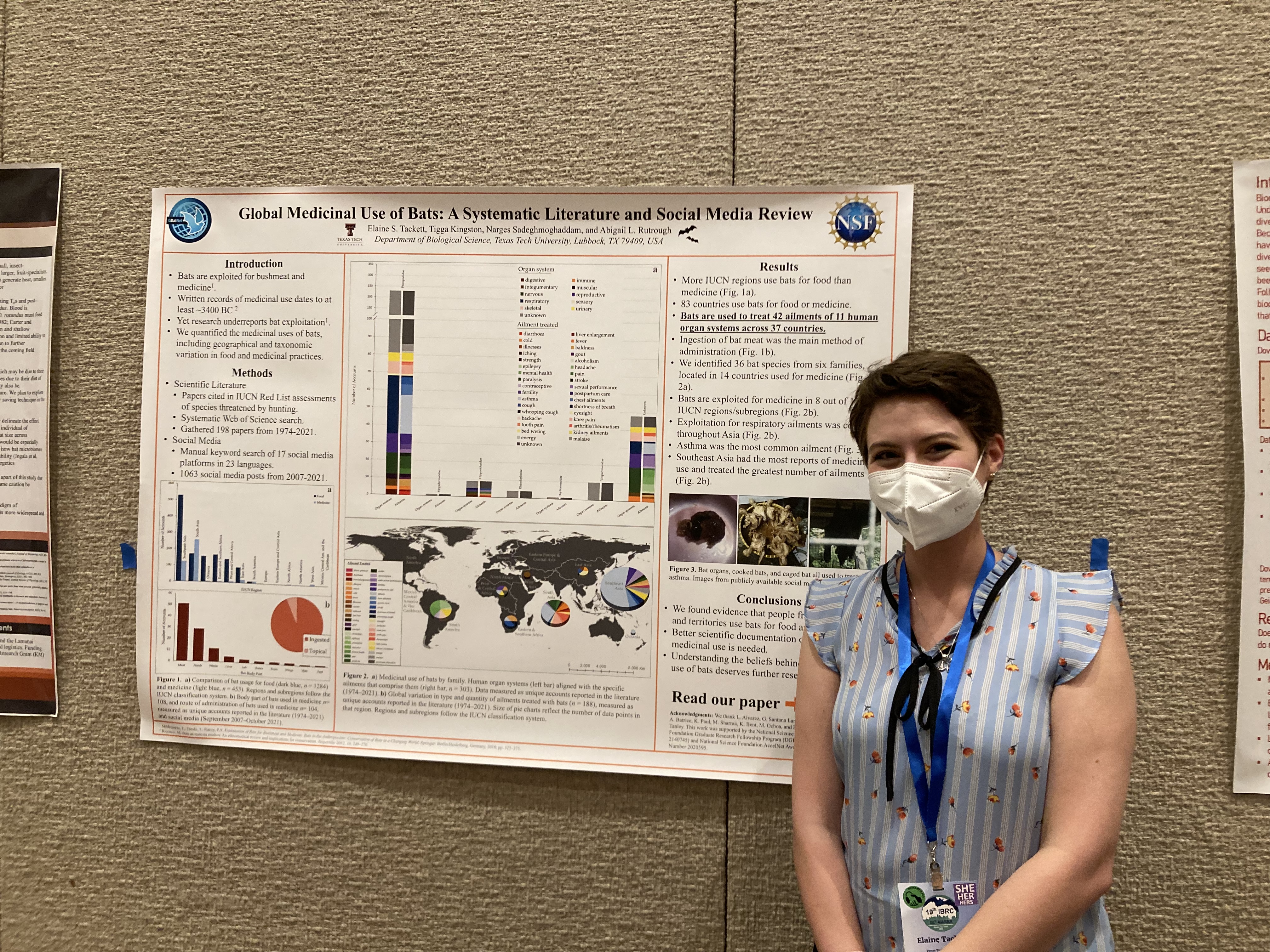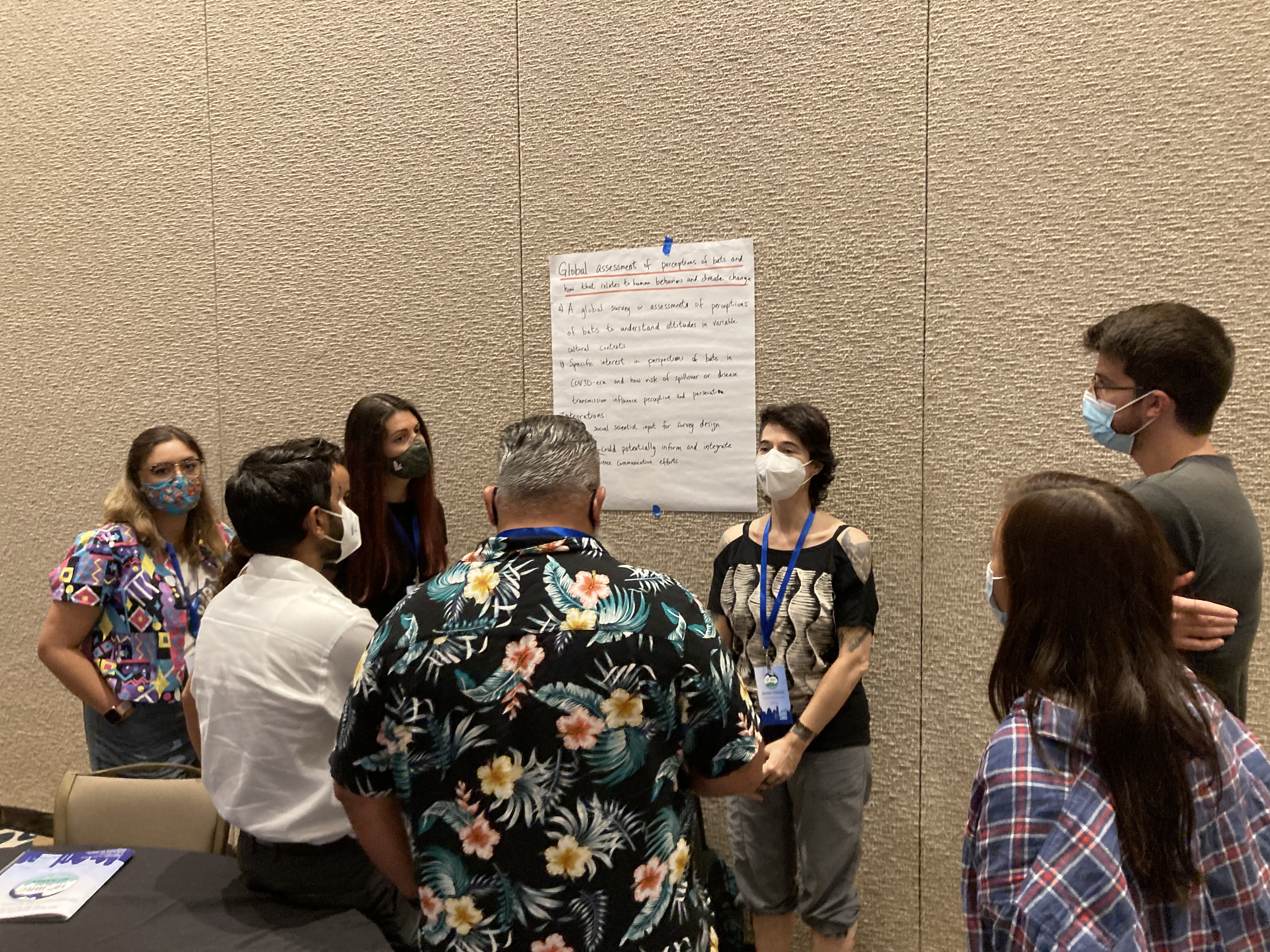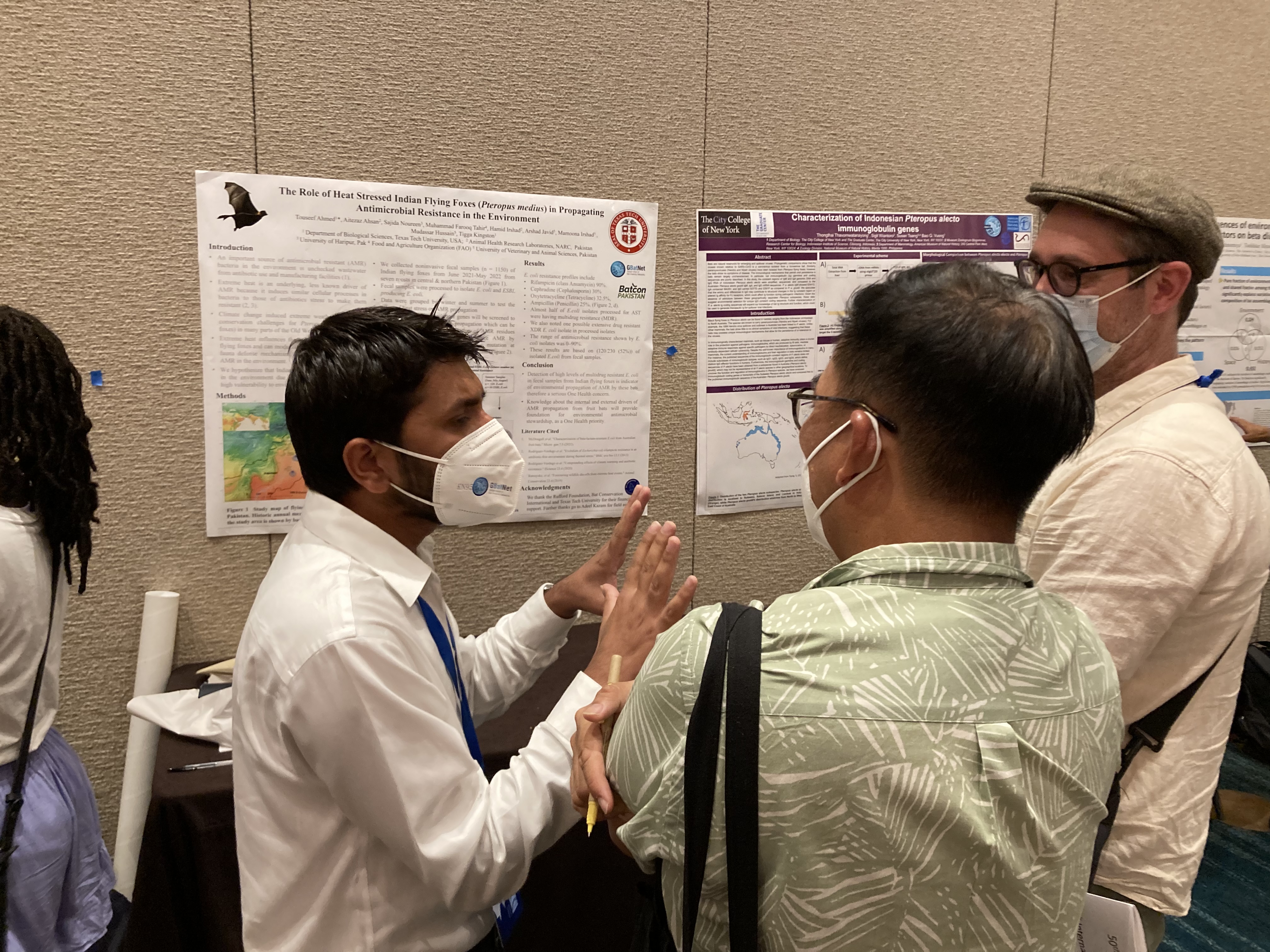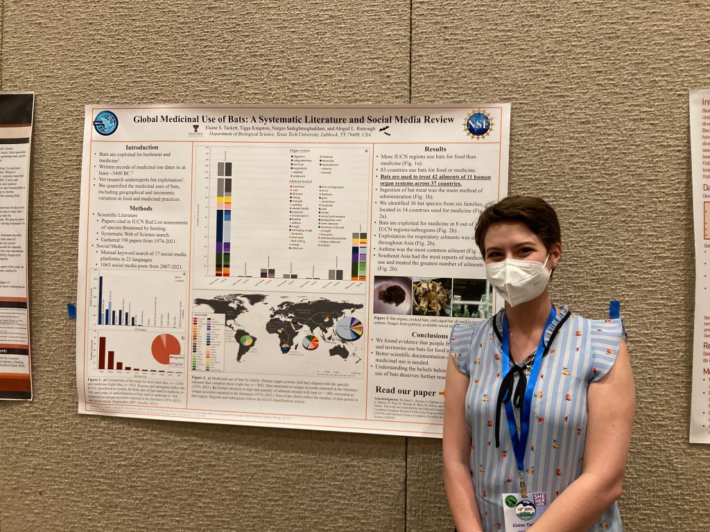 Limitation in Driving Bat-Hunting”, and Adrienne her’s entitled “A Seasonal Comparison of Foraging Movements of Pteropus alecto From an Urban and Peri-urban Roost”. Touseef presented his poster “The Role of Heat Stressed Indian Flying Foxes in Propagation of Antimicrobial Resistance in the Environment”, and recent Texas Tech undergraduate Elaine Tackett gave her first in-person poster “Global Medicinal Use of Bats: A Systematic Literature and Social Media Review“. As if that wasn’t enough, everyone contributed to running the GBatNet’s Wednesday research and recruitment workshop, attended by over 150 people.