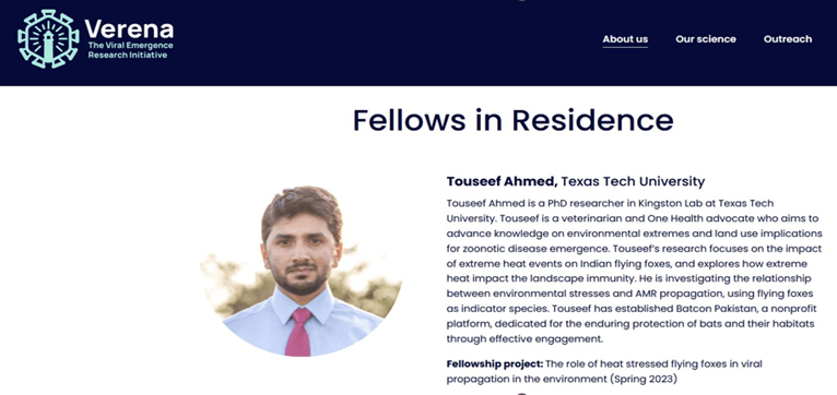Touseef has been selected for the inaugural cohort of the Verena Initiative Fellows in Residence Program to build upon his existing research work. He will conduct his lab work at Colorado State University in June 2023 in collaboration with Dr. Anna Fagre, who is Research Lead for Biology Integration at Verena.